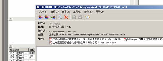 如果设置了“自动接收回执”的话,e2faxPlus则可以直接显示发送状态,请见: