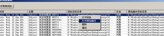 支持鼠标右键菜单,可以打开阅读已发传真件的内容等: